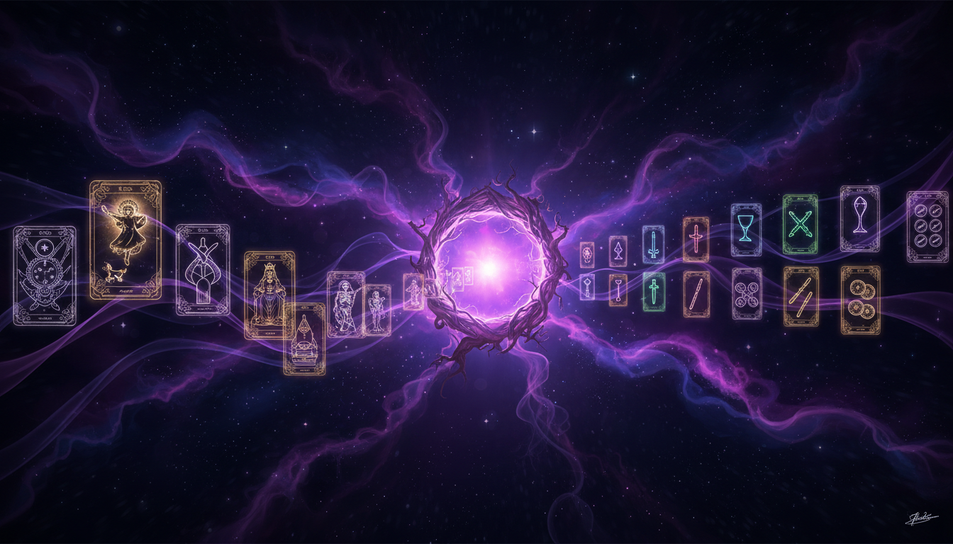 The 78 cards in a tarot deck represent the full range of human experience. Every emotion, every archetype, every stage of growth and struggle. When you lay cards on a table, you are not summoning supernatural forces. You are creating a framework for honest reflection.